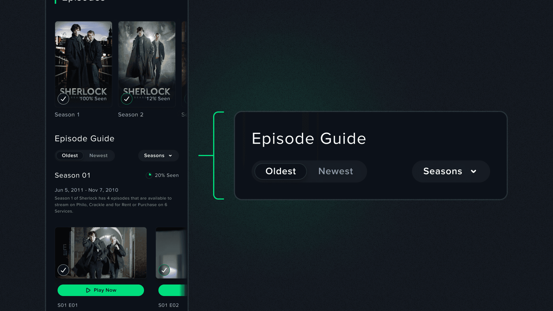 Whether you were trying to catch up with the latest episode or starting a TV show from the beginning, moving away from tabs to sorting and season selection could solve both use cases without hurting one another.